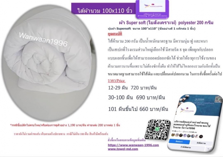 | ไส้ผ้านวม 200 กรัม เป็นน้ำหนักมาตรฐาน มีความนุ่ม ฟู และหนา | ||||||