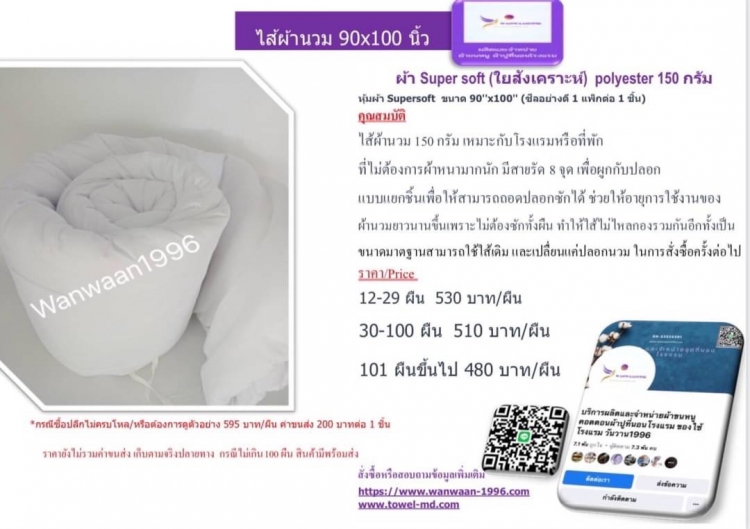 | 101 ผืนขึ้นไป 480 บาท/ผืน | |||||||