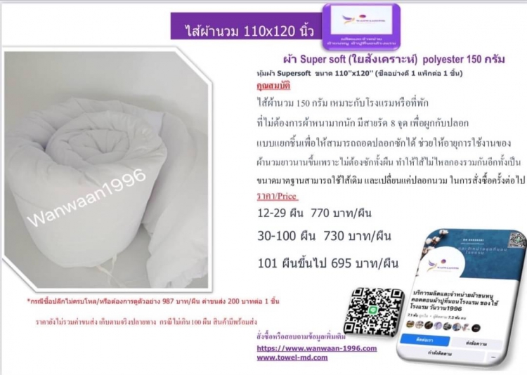 | หุ้มผ้า Supersoft ขนาด 110''x120'' (ซีลอย่างดี 1 แพ็กต่อ 1 ชิ้น) | |||||||