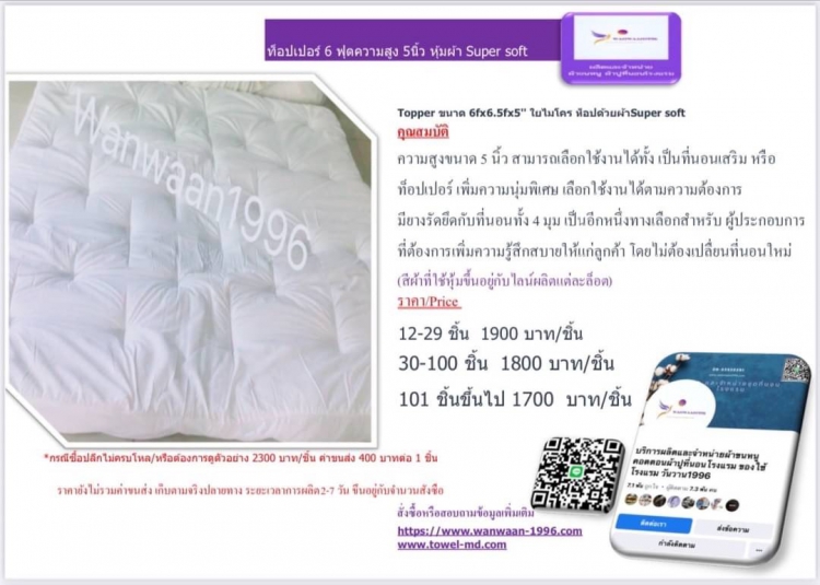 | Topper ขนาด 6fx6.5fx5'' ใยไมโคร ท็อปด้วยผ้าSuper soft | |||||||