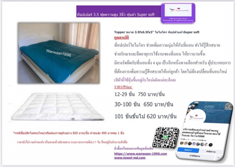 | Topper ขนาด 3.5fx6.5fx3'' ท็อปด้วยผ้าSuper soft | ||||||