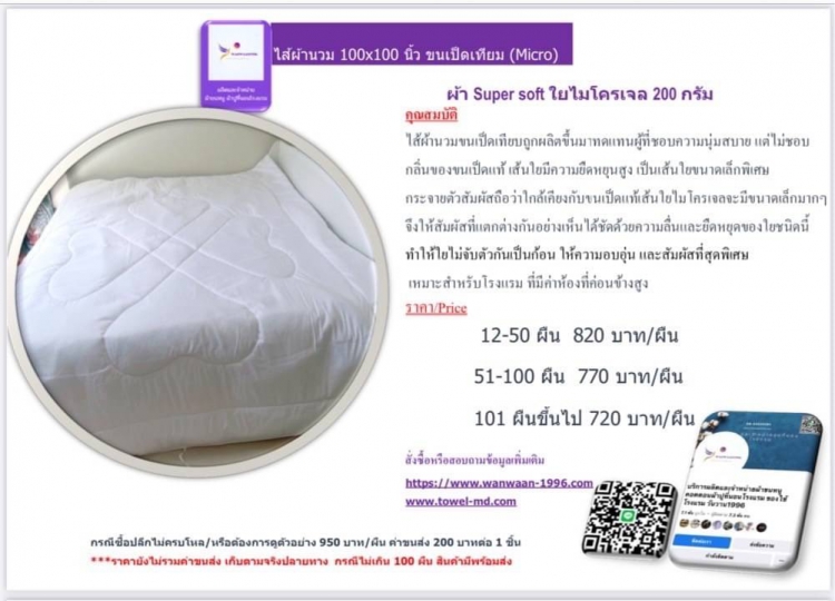 | ผ้า Super soft ใยไมโครเจล 200 กรัม | ||||||
