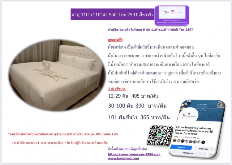 | 101 ผืนขึ้นไป 365 บาท/ผืน | |||||
