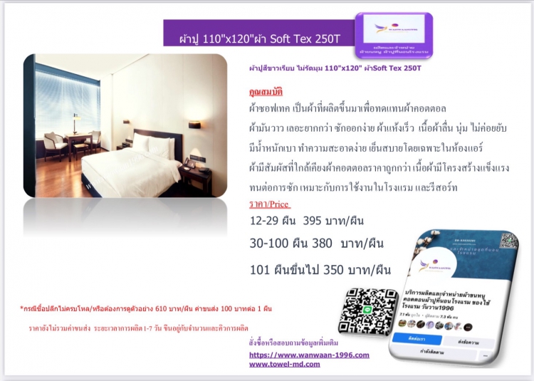 | 101 ผืนขึ้นไป 350 บาท/ผืน | |||||