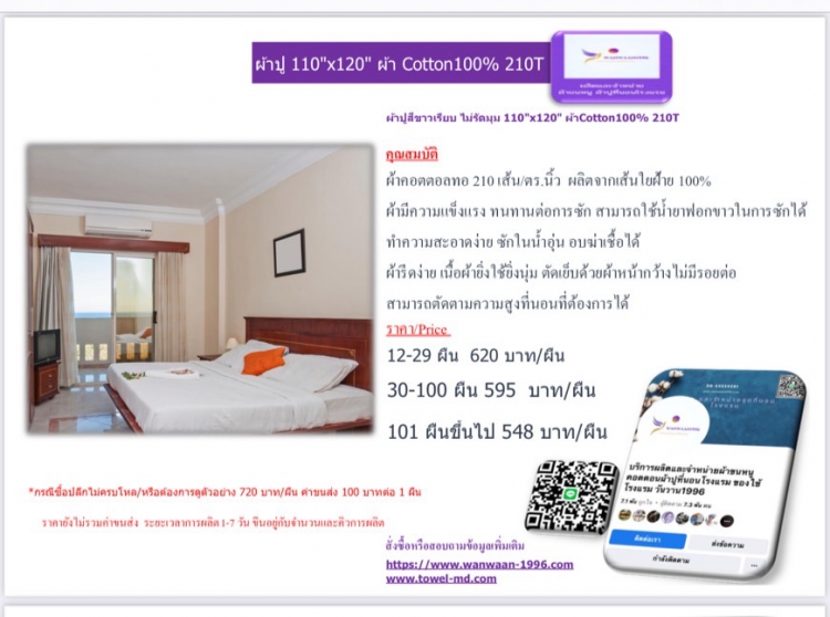 | 101 ผืนขึ้นไป 548 บาท/ผืน | ||||