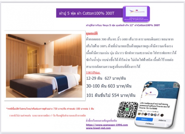 | 101 ผืนขึ้นไป 554 บาท/ผืน | ||||