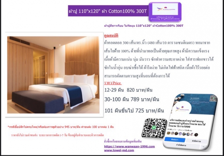 | 101 ผืนขึ้นไป 725 บาท/ผืน | ||||