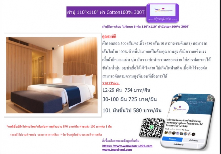 | 30-100 ผืน 725 บาท/ผืน | ||||