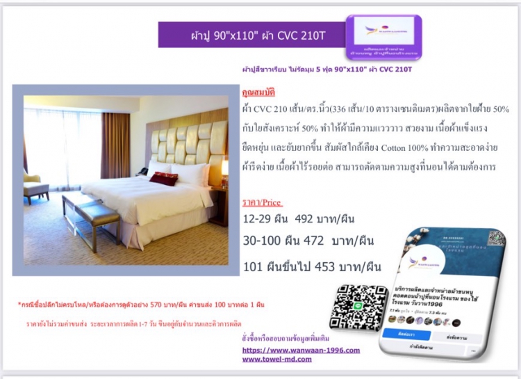 | 101 ผืนขึ้นไป 453 บาท/ผืน | ||||