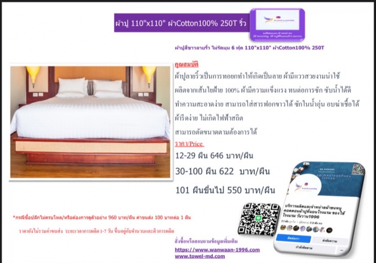 | 101 ผืนขึ้นไป 550 บาท/ผืน | ||||