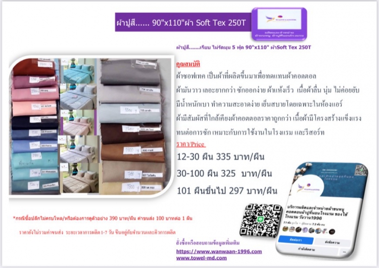 | ผ้าซอฟเทค เป็นผ้าที่ผลิตขึ้นมาเพื่อทดแทนผ้าคอตตอล | ||||