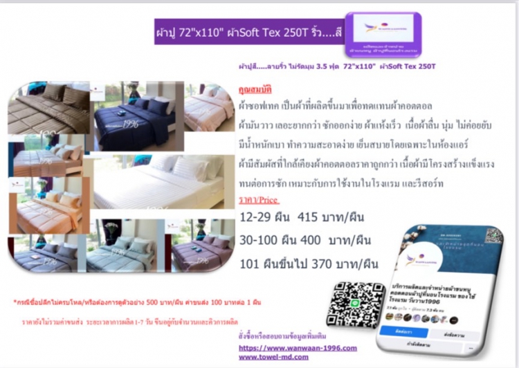 | 101 ผืนขึ้นไป 370 บาท/ผืน | ||||