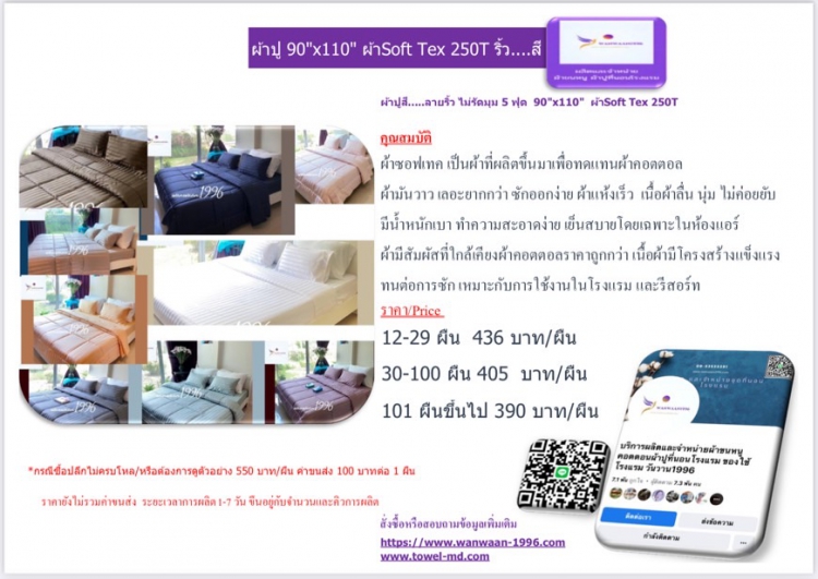 | 30-100 ผืน 405 บาท/ผืน | ||||