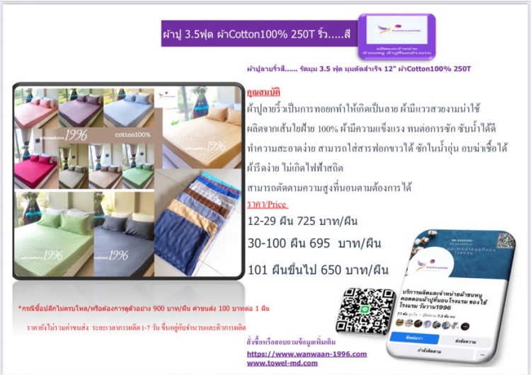 | 101 ผืนขึ้นไป 650 บาท/ผืน | ||||