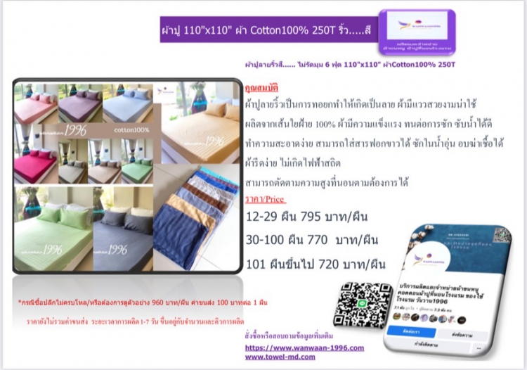| 101 ผืนขึ้นไป 720 บาท/ผืน | ||||