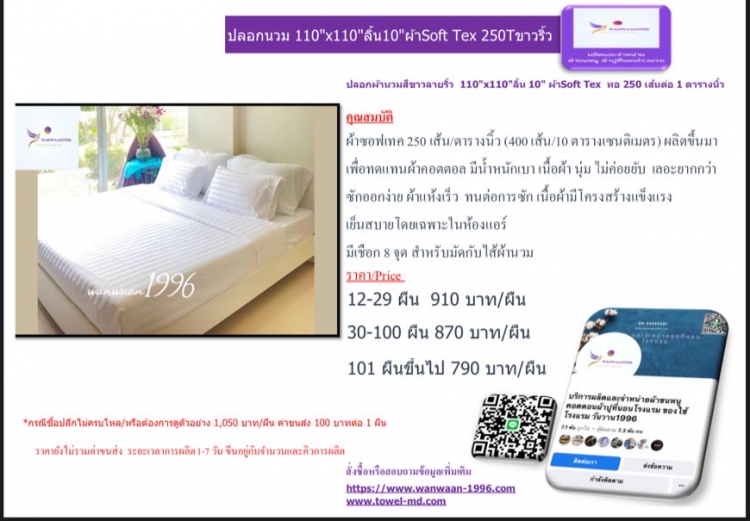 | ปลอกผ้านวมสีขาวลายริ้ว 110x110+10 ผ้า Soft Tex ทอ 250 เส้นต่อ 1 ตารางนิ้ว | ||||