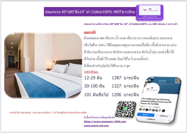 | ผ้ารีดง่าย เนื้อผ้าไร้รอยต่อ นิยมใช้ในโรงแรมชั้นนำ | ||||