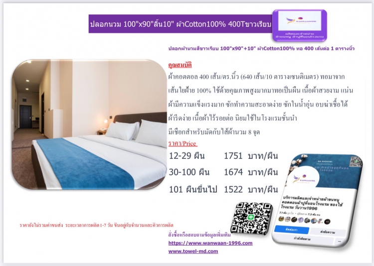 | ผ้ารีดง่าย เนื้อผ้าไร้รอยต่อ นิยมใช้ในโรงแรมชั้นนำ | ||||
