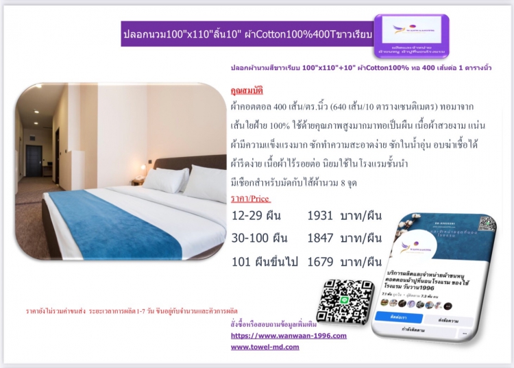 | ผ้ารีดง่าย เนื้อผ้าไร้รอยต่อ นิยมใช้ในโรงแรมชั้นนำ | ||||