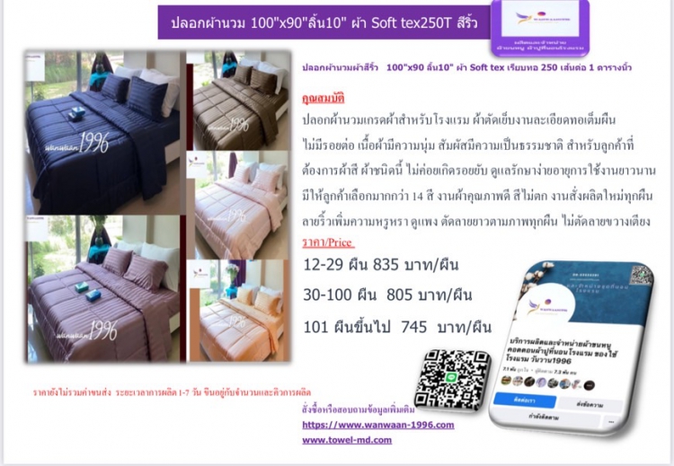 | ปลอกผ้านวมเกรดผ้าสำหรับโรงแรม ผ้าตัดเย็บงานละเอียดทอเต็มผืน | ||||