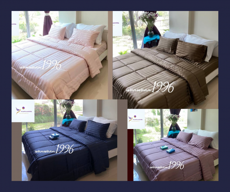 | ลายริ้วเพิ่มความหรูหรา ดูแพง ตัดลายยาวตามภาพทุกผืน ไม่ตัดลายขวางเตียง | ||||