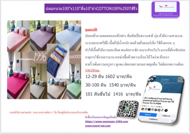 | ทำให้เนื้อผ้ามีความละเอียด ทนต่อการซัก เหมาะสำหรับโรงแรมที่ต้องซักบ่อย | ||||