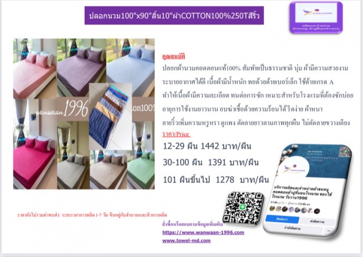 ปลอกนวม100x90ลิ้น10ผ้าCOTTON100%250Tสีริ้ว คุณสมบัติ |