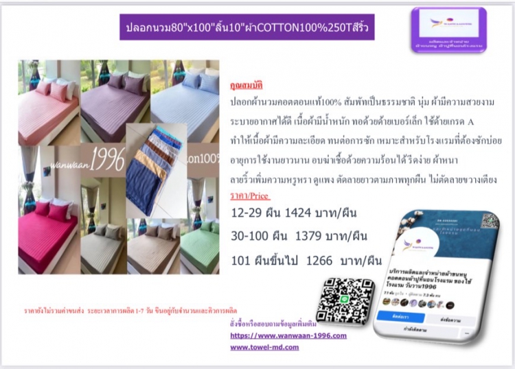 ปลอกนวม80"x100"ลิ้น10"ผ้าCOTTON100%250Tสีริ้ว