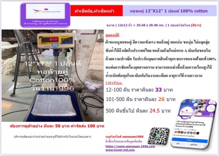 | ซับน้ำได้ดี ผลิตในประเทศไทย ทอด้วยด้ายใหม่เกรด A เย็บเก็บขอบริม | ||||||||||||||||||||