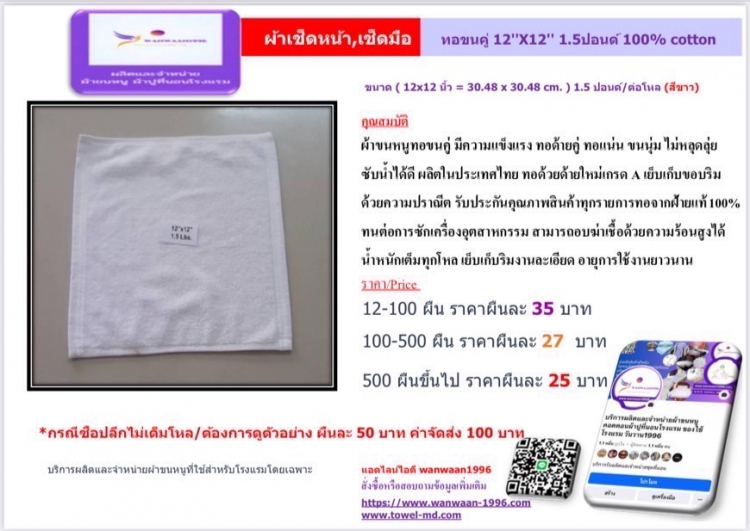 | ซับน้ำได้ดี ผลิตในประเทศไทย ทอด้วยด้ายใหม่เกรด A เย็บเก็บขอบริม | ||||||||||||||||