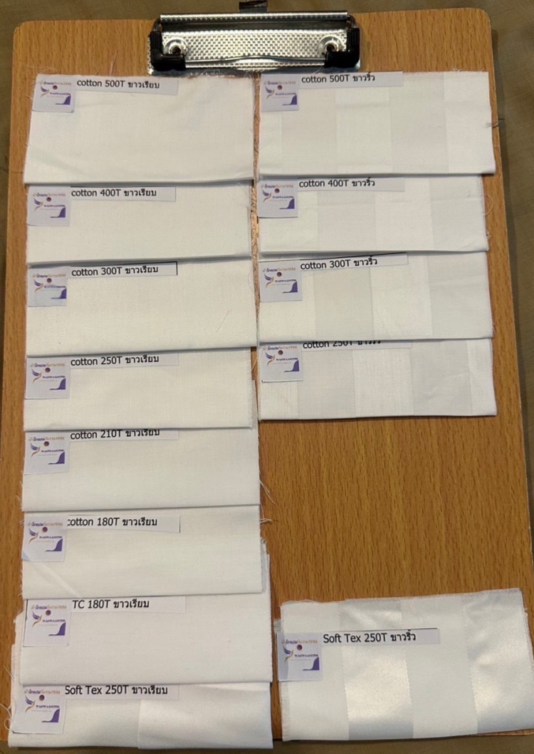 ยินดีจัดส่งตัวอย่างผ้างานจริงให้ลูกค้าสำหรับท่านที่ต้องการสัมผัสเนื้อผ้าก่อนตัดสินใจ