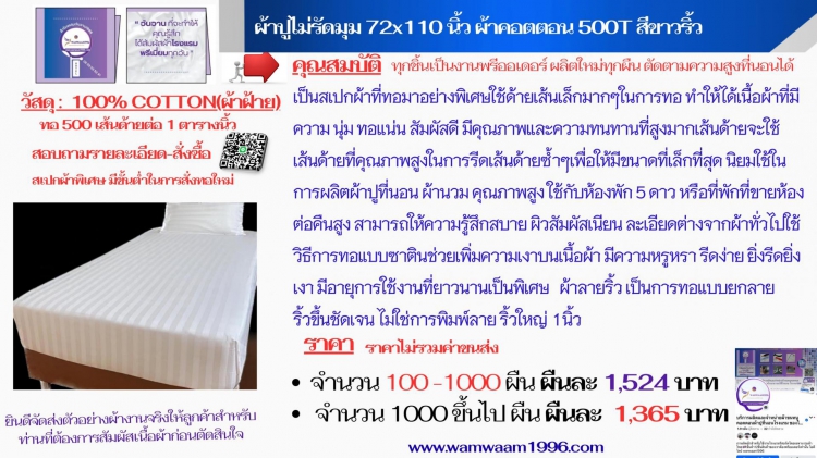 - จำนวน 100 -1000 ผืน ผืนละ 1,524 บาท