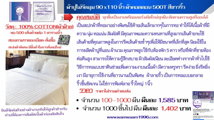 ผ้าปูไม่รัดมุม 90x110 นิ้ว ผ้า cotton100% 500T สีขาวริ้ว