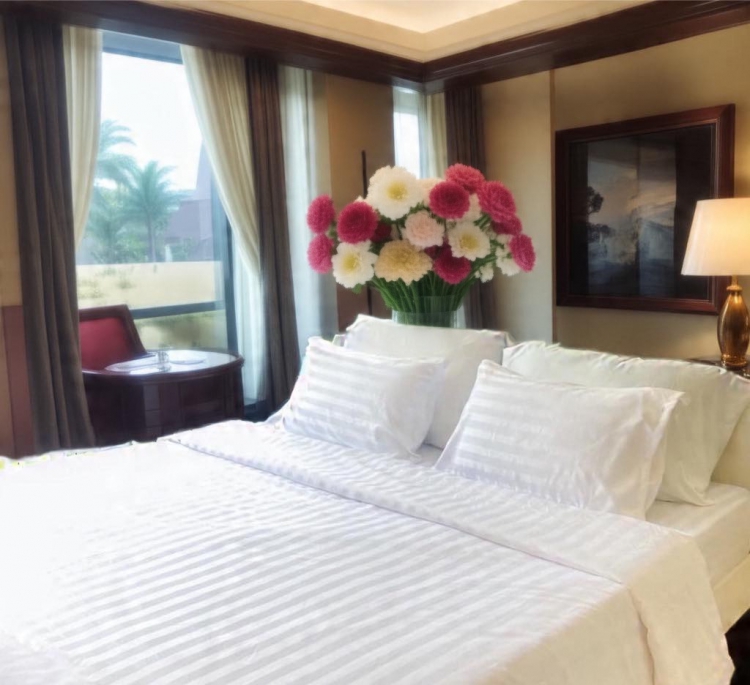ริ้วขึ้นชัดเจน ไม่ใช่การพิมพ์ลาย ริ้วใหญ่ 1 นิ้ว ปลอกผ้านวมจะมีเชือก 8 จุด สำหรับมัดเข้ากับใส้นวมเมื่อใช้งาน ช่วยให้ใส้ไม่กอง หรือเลื่อนหลุดเมื่อลูกค้าใช้งาน