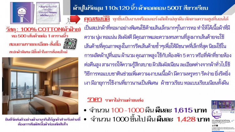 - จำนวน 100 -1000 ผืน ผืนละ 1,615 บาท