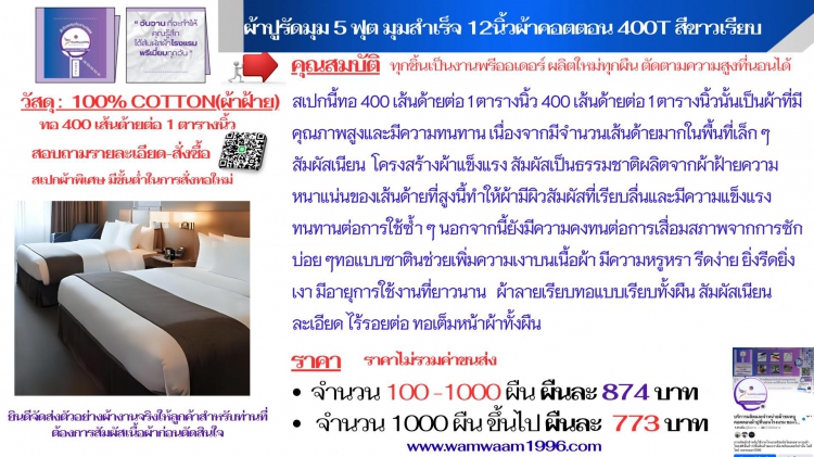 - จำนวน 100 -1000 ผืน ผืนละ 874 บาท