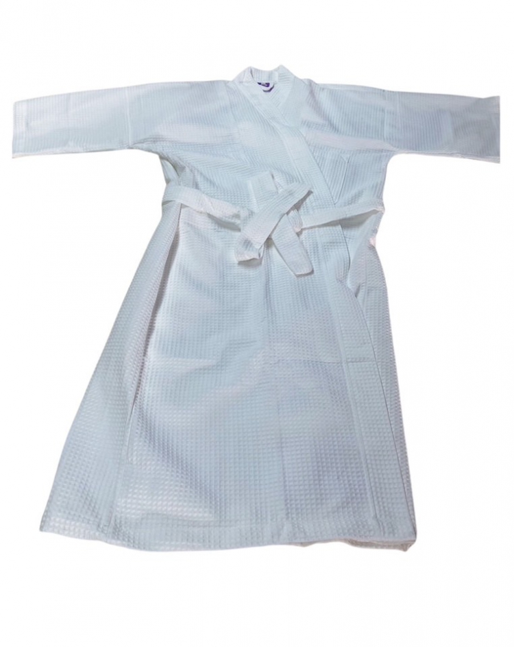 คุณสมบัติที่โดดเด่นของผ้ารังผึ้งคือความเบาและการระบายอากาศที่ดีเยี่ยม ทำให้เหมาะสำหรับการสวมใส่หลังอาบน้ำหรือใช้ในสปา หรือจะเป็นสำหรับการพักผ่อนหลังอาบน้ำในห้องพักโรงแรมโครงสร้างของผ้ารังผึ้งช่วยให้สามารถดูดซับน้ำได้ดีและแห้งเร็วจึงไม่ทำให้รู้สึกอึดอัดหรือหนักเมื่อสวมใส่ นอกจากนี้ เนื้อผ้าที่นุ่มและสัมผัสสบายยังช่วยเพิ่มความผ่อนคลายและความสุขให้กับผู้ใช้ ชุดคลุมอาบน้ำผ้ารังผึ้งทำให้ผิวรู้สึกสบายและไม่อับชื้น นอกจากนี้ ผ้ารังผึ้งยังมีน้ำหนักเบา ทำให้การสวมใส่ไม่รู้สึกหนักหรืออึดอัดอีกทั้งยังสามารถซับน้ำได้ดีช่วยให้ตัวแห้งเร็วหลังอาบน้ำเป็นผ้าฝ้ายแท้ทนต่อการใช้งานและการซักและอายุการใช้งานยาวนาน ขนาดนี้เป็นขนาดแนะนำเหมาะสำหรับลูกค้าเอเชีย