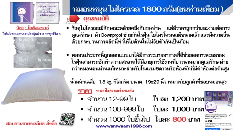 หมอนหนุน ไมโครเจล 1800 กรัม(ขนห่านเทียม )