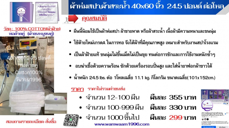 ผ้าห่มสปา,ผ้าสระน้ำ 40x60 นิ้ว 24.5 ปอนด์ ต่อโหล
