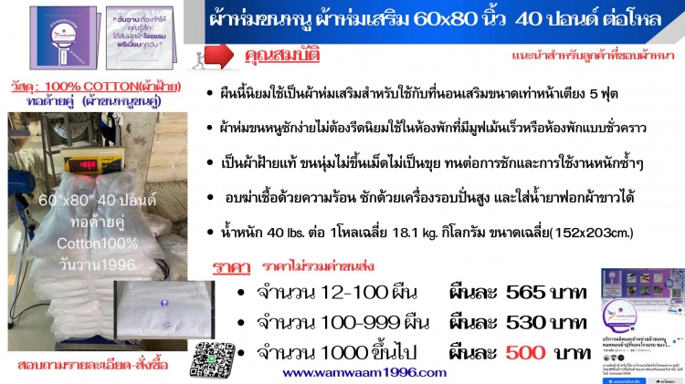 - จำนวน 12 - 500 ผืน ผืน ละ 565 บาท