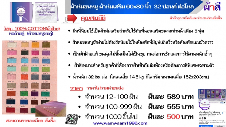 - จำนวน 12 - 100 ผืน ผืน ละ 589 บาท