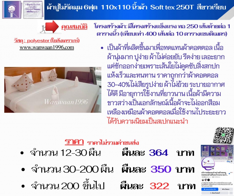 - จำนวน 12 - 30 ผืน ผืน ละ 364 บาท