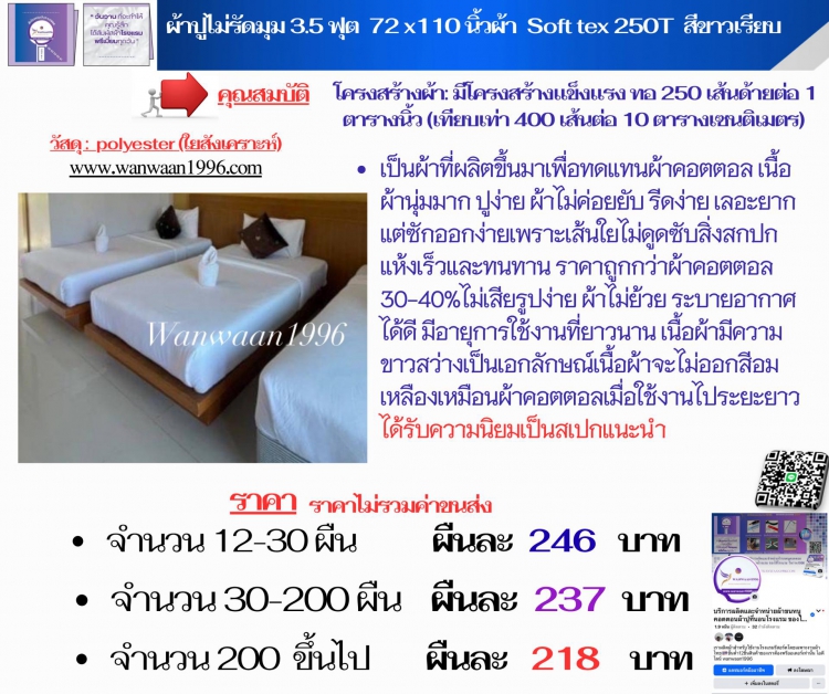 - จำนวน 12 - 30 ผืน ผืน ละ 246 บาท