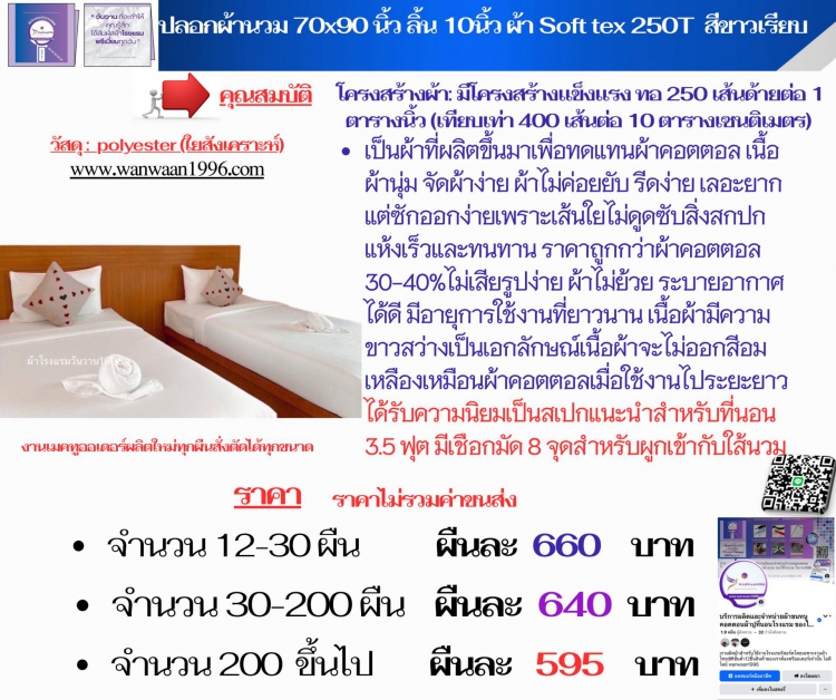 - จำนวน 12 - 30 ผืน ผืน ละ 660 บาท